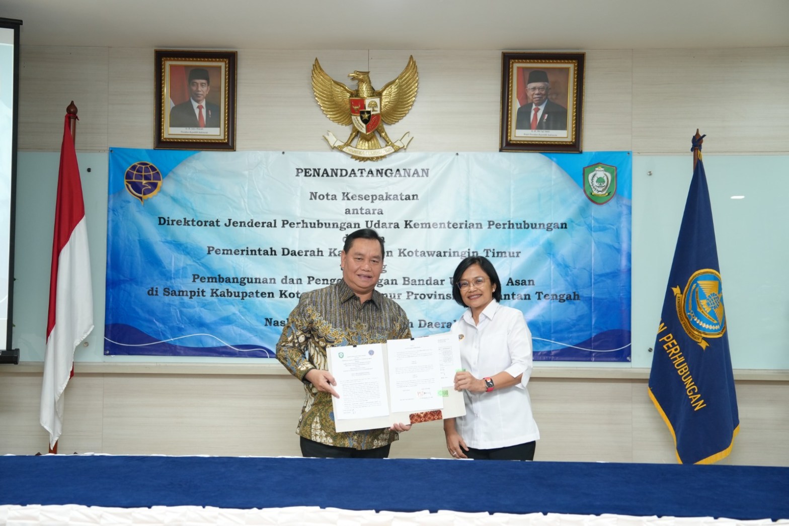 Jakarta (10/6/2024) – Kementerian Perhubungan melalui Direktorat Jenderal Perhubungan Udara (Ditjen Hubud) melakukan penandatanganan Nota Kesepakatan dengan Pemerintah Daerah Kabupaten Kotawaringin Timur tentang Pembangunan dan Pengembangan Bandara H. Asan di Sampit, Kabupaten Kotawaringin Timur, Provinsi Kalimantan Tengah. Acara ini berlangsung pada Senin (10/6) di Kantor Kementerian Perhubungan, Jakarta.