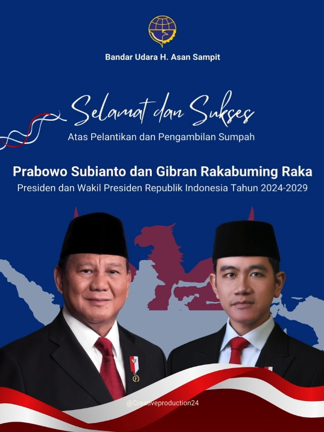 Dengan penuh hormat, kami keluarga besar Bandara H. Asan Sampit dan masyarakat Kotawaringin Timur mengucapkan selamat atas pelantikan Bapak Prabowo Subianto sebagai Presiden Republik Indonesia dan Bapak Gibran Rakabuming Raka sebagai Wakil Presiden Republik Indonesia periode 2024-2029.