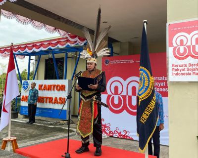 Upacara dipimpin langsung oleh Kepala Kantor UPBU Kelas II H. Asan Sampit, Abdul Haris, yang tampil mengenakan pakaian adat khas Dayak, lengkap dengan ikat kepala berornamen burung rangkong dan bulu merak sebagai simbol kearifan lokal.