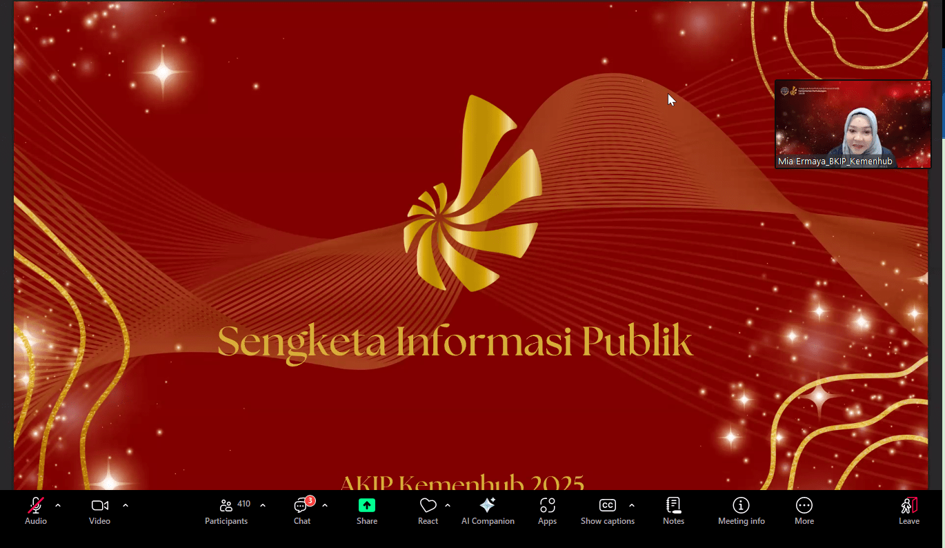 Sampit, 21 Agustus 2025 – Petugas Pejabat Pengelola Informasi dan Dokumentasi (PPID) Kantor UPBU Kelas II H. Asan Sampit mengikuti kegiatan Kelas PPID: Sengketa Informasi Publik yang diselenggarakan secara daring melalui Zoom Meeting pada hari Kamis, 21 Agustus 2025 pukul 08.00 WIB hingga selesai, dengan narasumber Ibu Mia Ermaya dari Biro Komunikasi dan Informasi Publik.